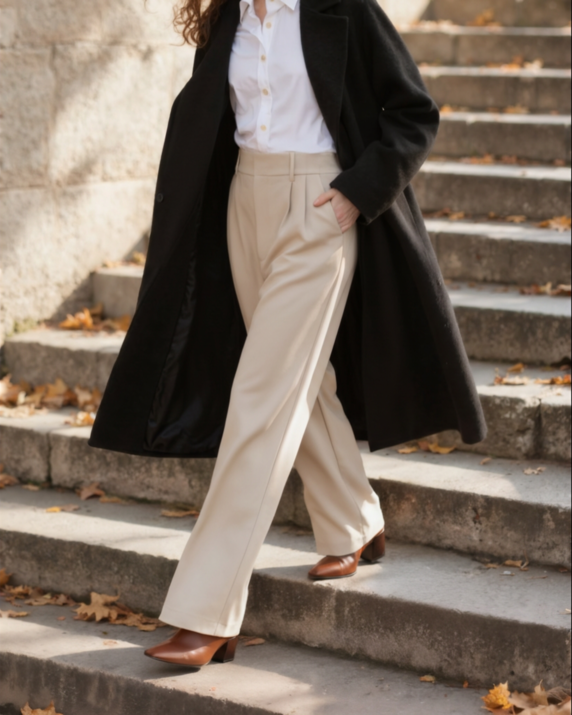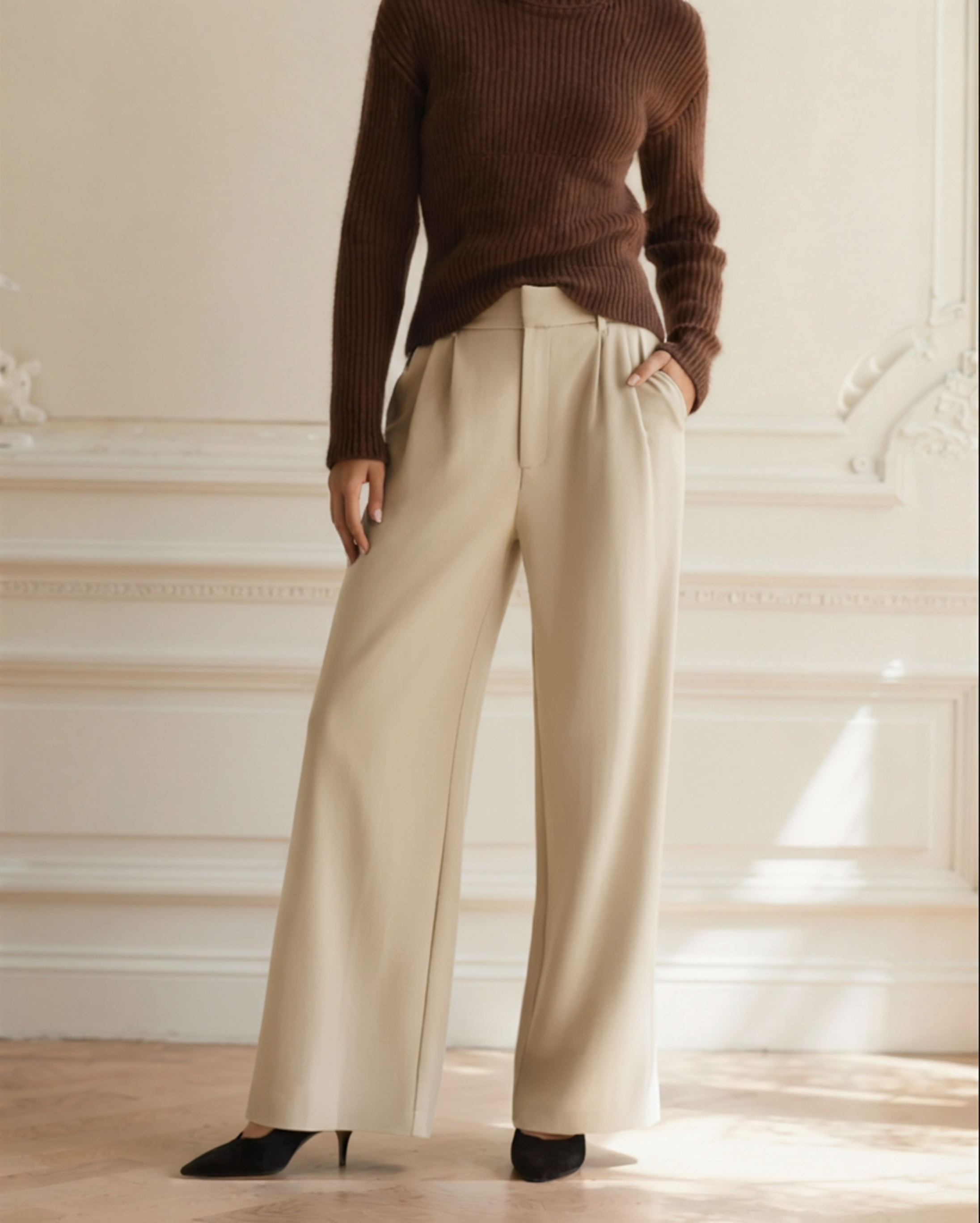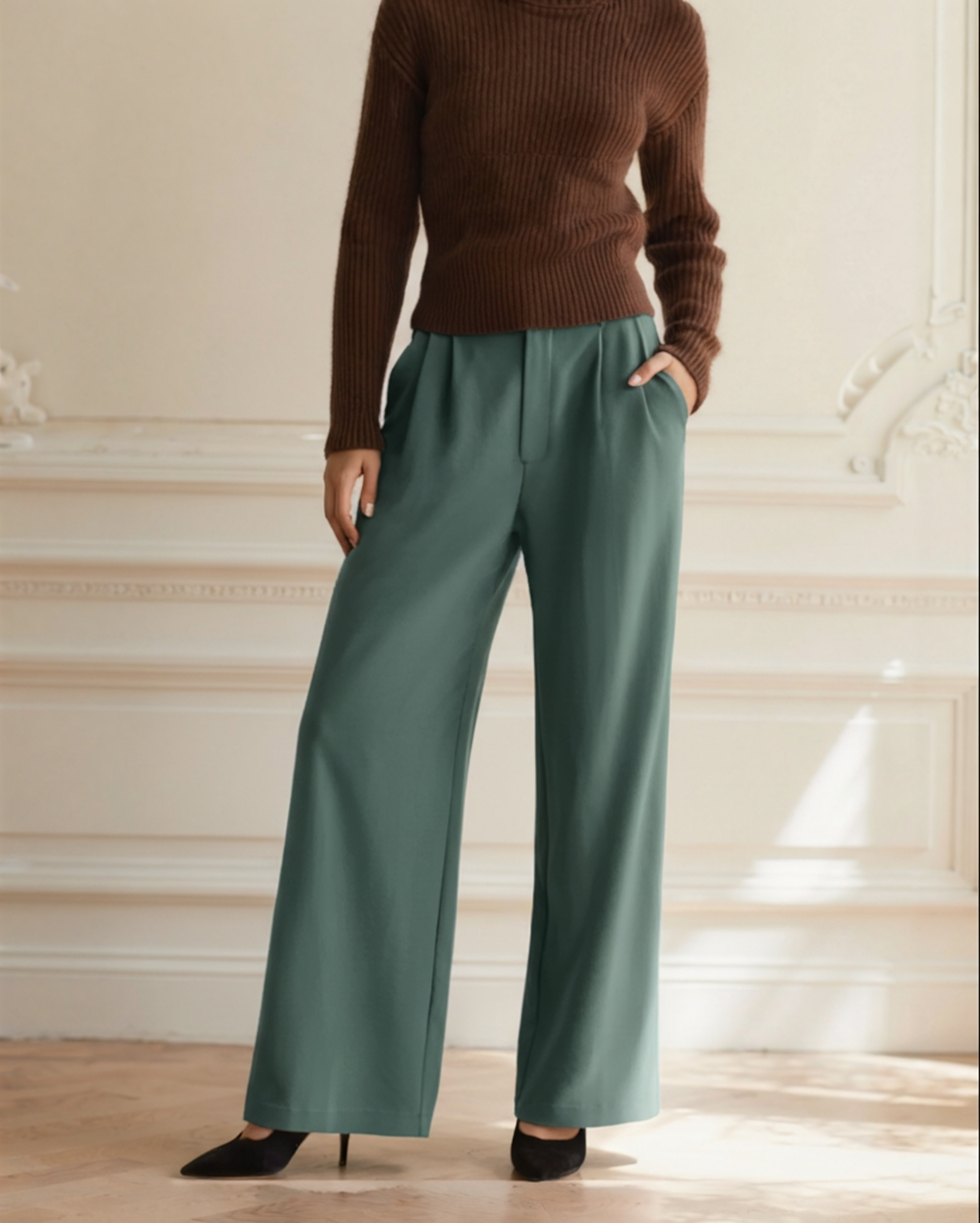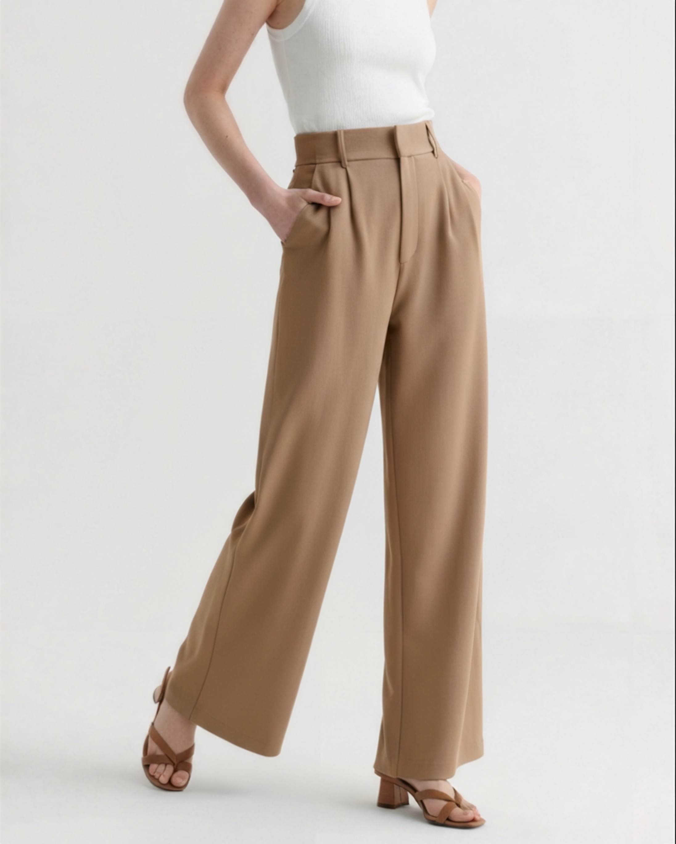 The Serena Wide-Leg Trousers offer a sophisticated take on office wear. Crafted from a refined blend of fabrics, these trousers feature a fluid, wide-leg silhouette that combines comfort with elegance. The tailored waistband ensures a flattering fit, while the classic design maintains a professional edge. Ideal for a polished, modern look in any business setting
